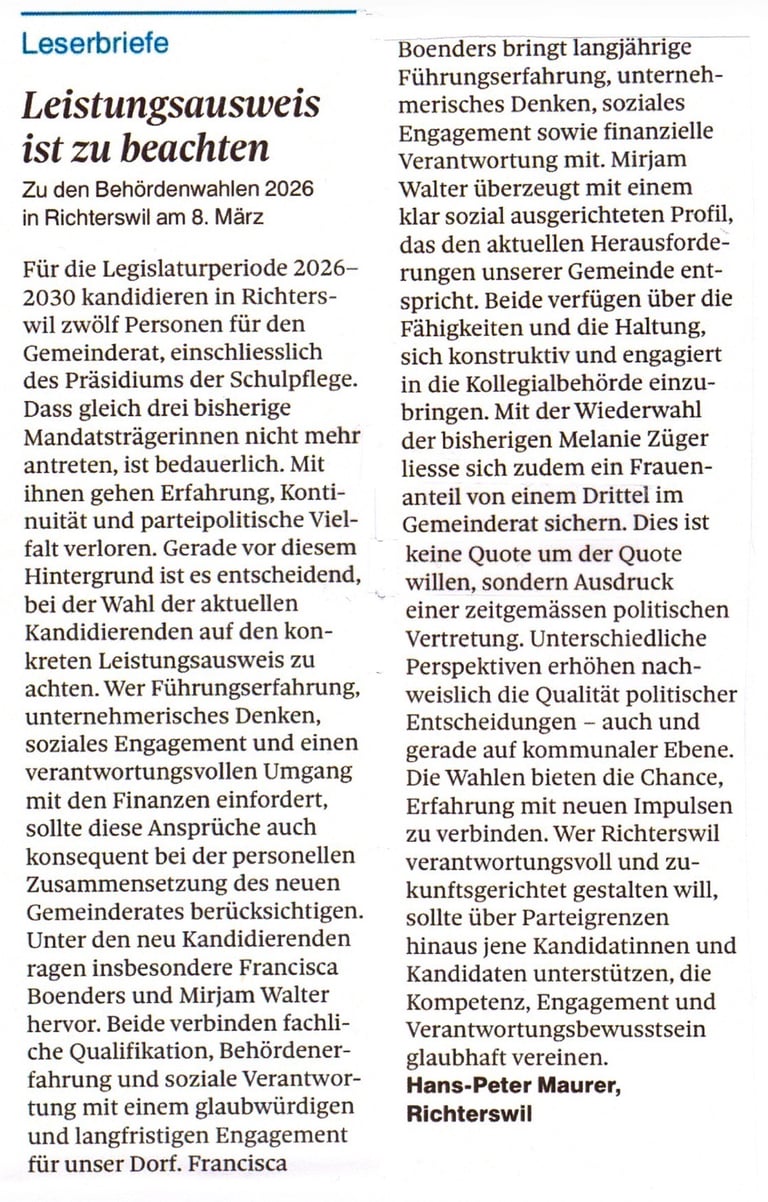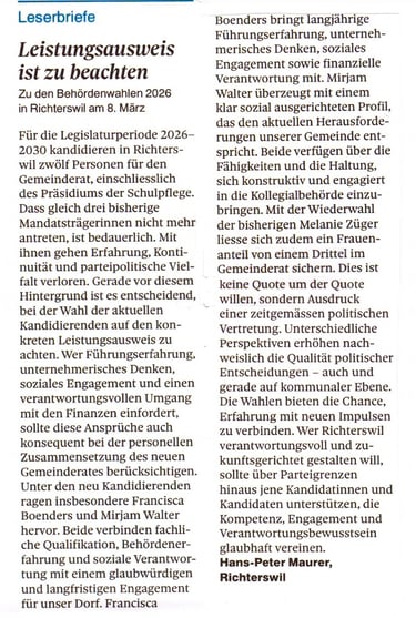 Leserbrief Zürichsee-Zeitung